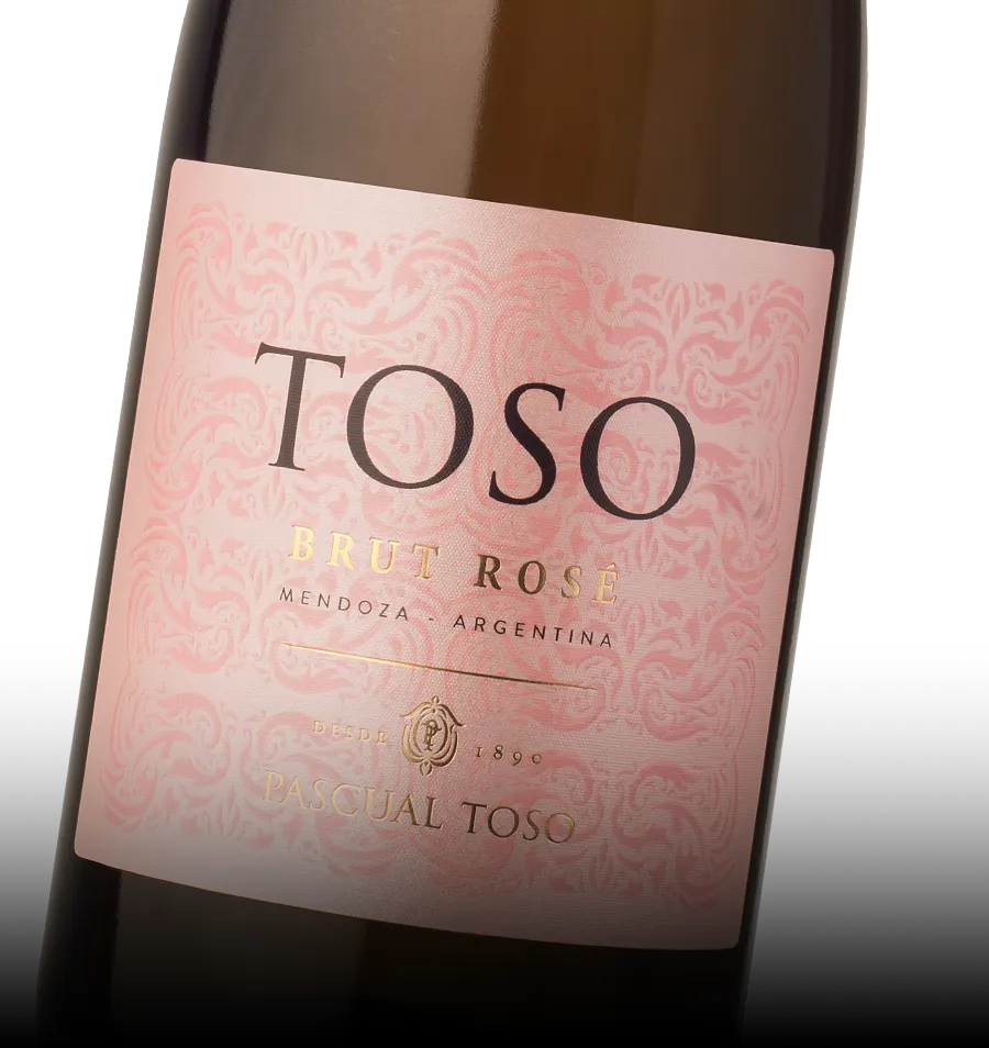 Nuestro espumante Pascual Toso Brut Rosé, 95 % Chardonnay y un 5 % Malbec, es criado en viñedos de 720 mts (s.n.m), fermentado en tanques de acero inoxidables con levaduras seleccionadas y toma de espuma a través de método Charmat en forma lenta y suave a una temperatura entre 16-18 grados.