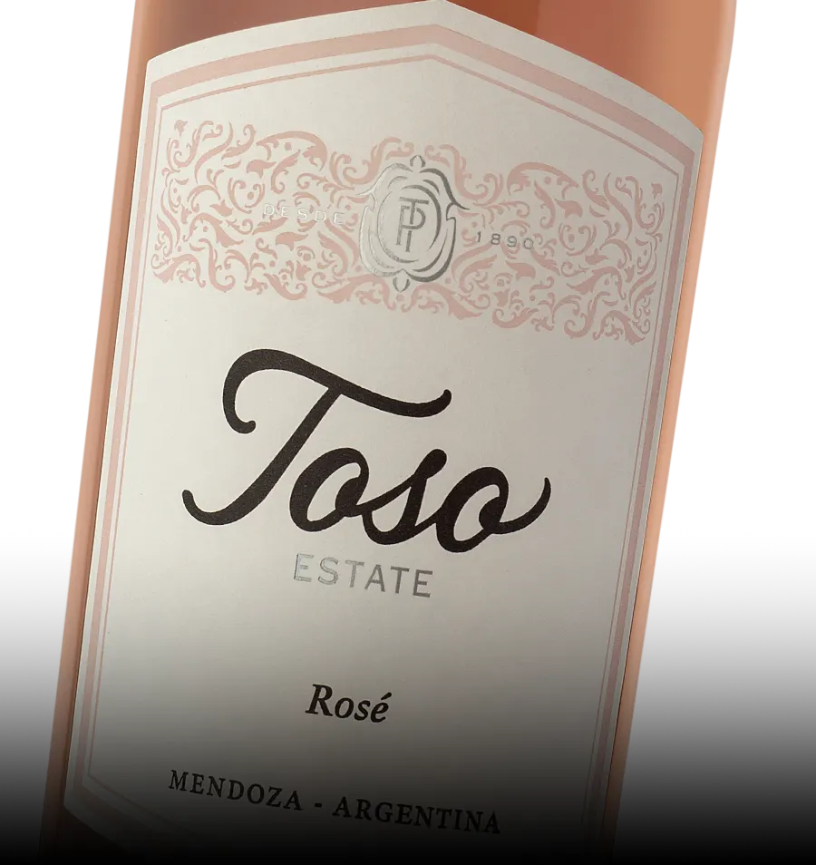Our Toso Rosé Brut sparkling wine is 95% Chardonnay and 5% Malbec made from grapes in the vineyards 720 meters above sea level fermented in stainless steel tanks with selected yeasts, and foamed carbonated using the Charmat method slowly and gently at a temperature between 16-18°C.