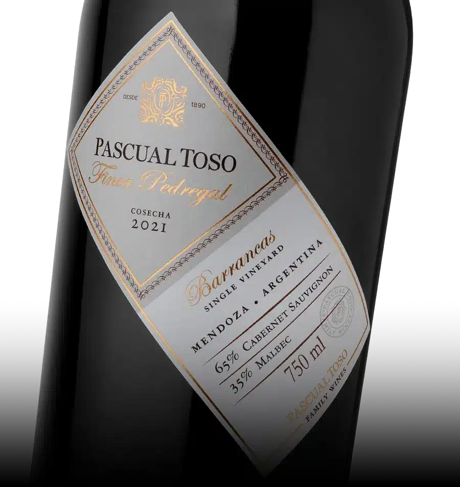 Pascual Toso Finca Pedregal es un especial blend de 70% Cabernet Sauvignon y 30% Malbec, la máxima expresión de dos viñedos únicos que la familia Toso plantó en 1950.