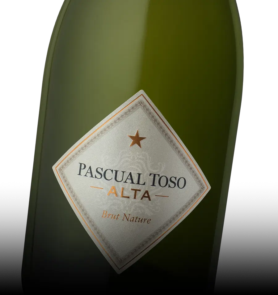 Nuestro espumante Pascual Toso Alta Brut Nature es 100 % Chardonnay, cosechado manualmente y fermentado con método Tradicional a 14 grados en botellas con levaduras seleccionadas.