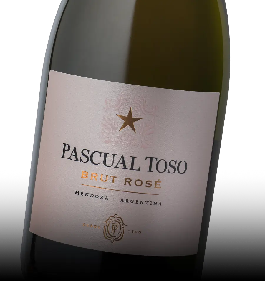 Nuestro espumante Pascual Toso Brut Rosé, 95 % Chardonnay y un 5 % Malbec, es criado en viñedos de 720 mts (s.n.m), fermentado en tanques de acero inoxidables con levaduras seleccionadas y toma de espuma a través de método Charmat en forma lenta y suave a una temperatura entre 16-18 grados.