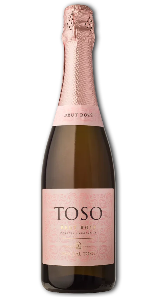Nuestro espumante Pascual Toso Brut Rosé, 95 % Chardonnay y un 5 % Malbec, es criado en viñedos de 720 mts (s.n.m), fermentado en tanques de acero inoxidables con levaduras seleccionadas y toma de espuma a través de método Charmat en forma lenta y suave a una temperatura entre 16-18 grados.